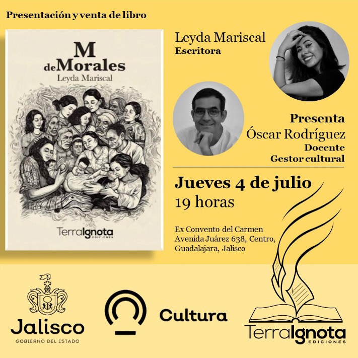 Por fin se llegó el día. Con toda la emoción del mundo, las y los invito este jueves 4 de julio a la presentación de mi libro «M de Morales», la que se realizará en el Ex convento del Carmen, centro de Guadalajara a las 7:00 p.m.